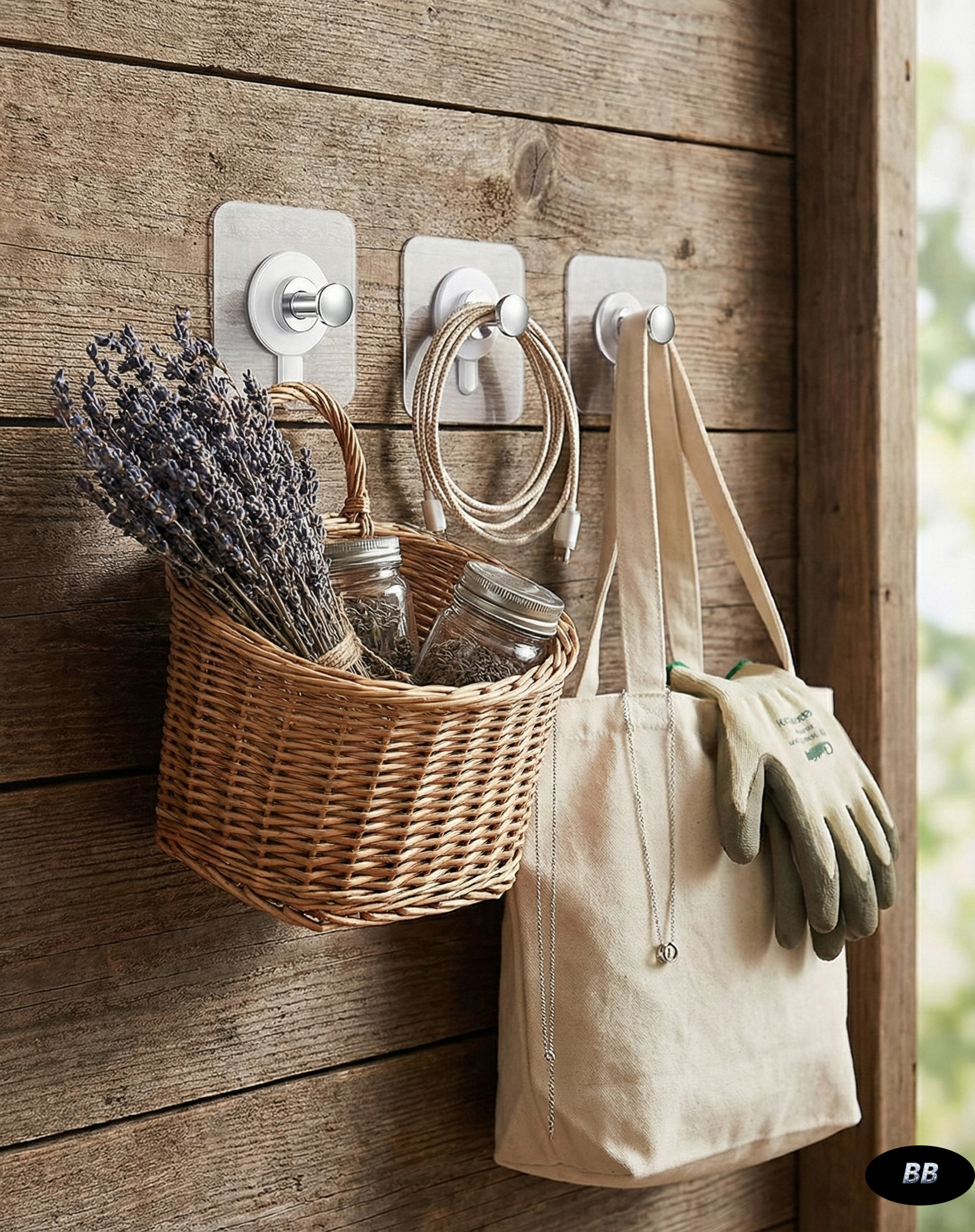 Door Hooks: For keys, hats, scarves, purses, and leashes.